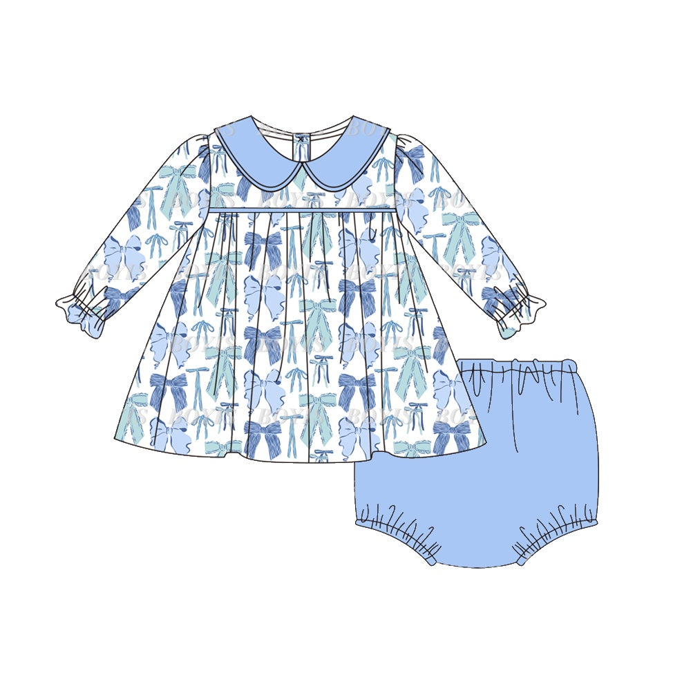 Newborn Baby Girls Blue Bow Bummie Set Preorder