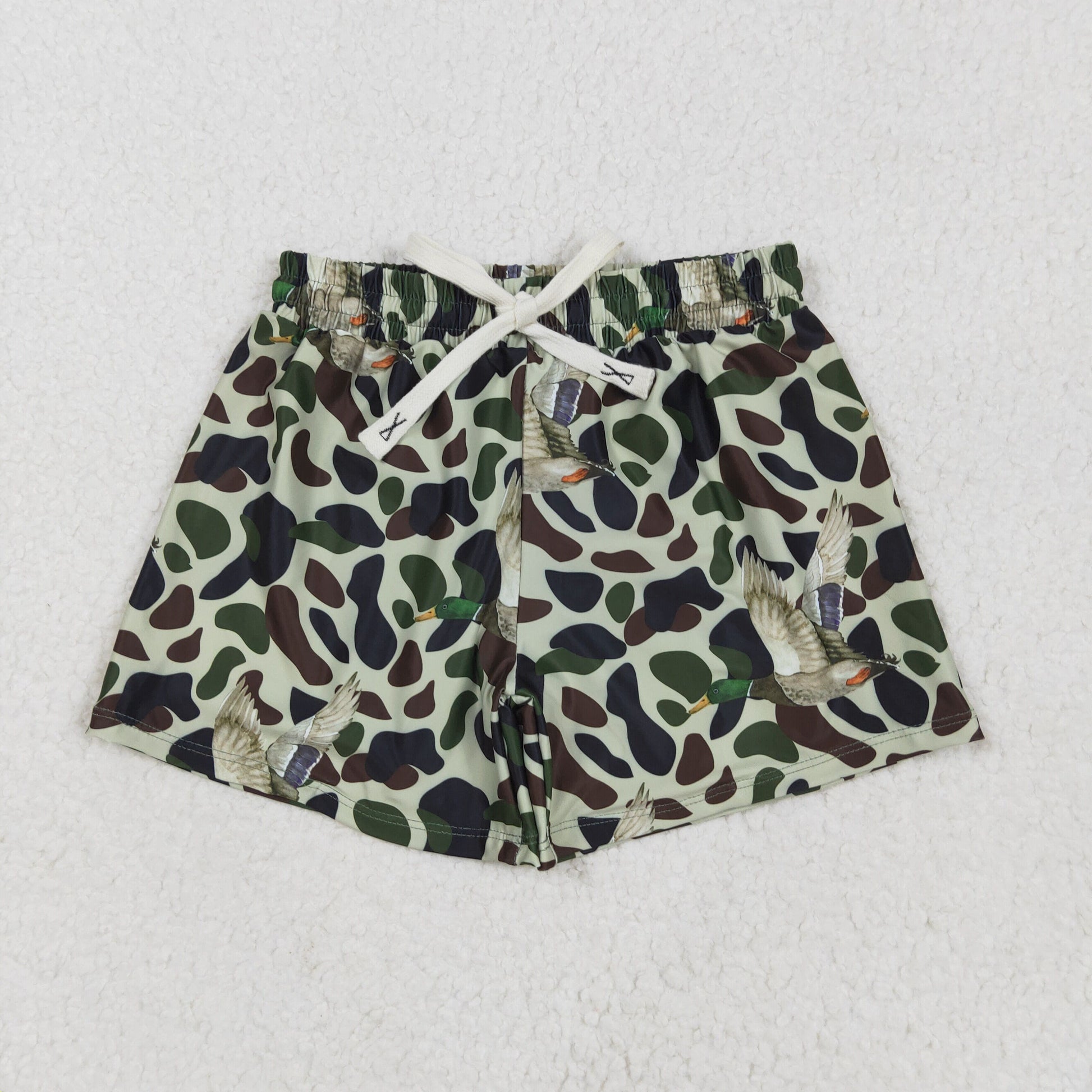 Kids Boys Dark Green Camo Ducks Print Swimming Trunks Summer Shorts