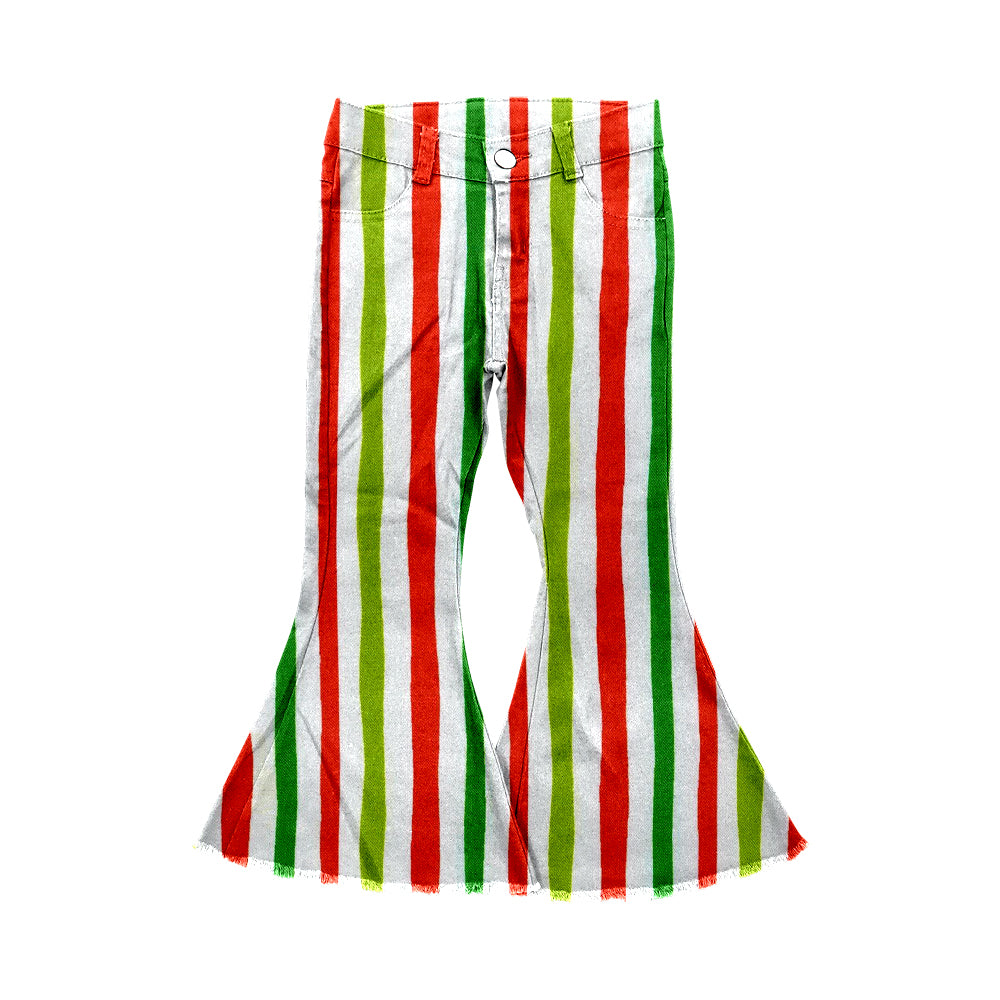 Kdis Girls Christmas Red Green Striped Print Denim Bell Bottom Pants Pre-order
