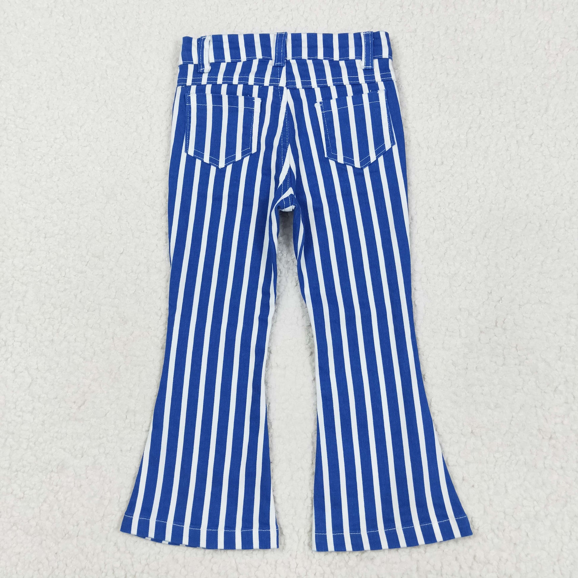 P0761 Baby Girls Blue Striped Flare Denim Pants