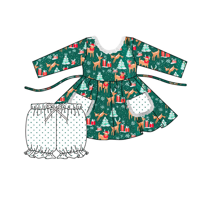 Preorder ⚠ 5 MOQ Kids Girls Christmas Reindeer Outfit With Pocket