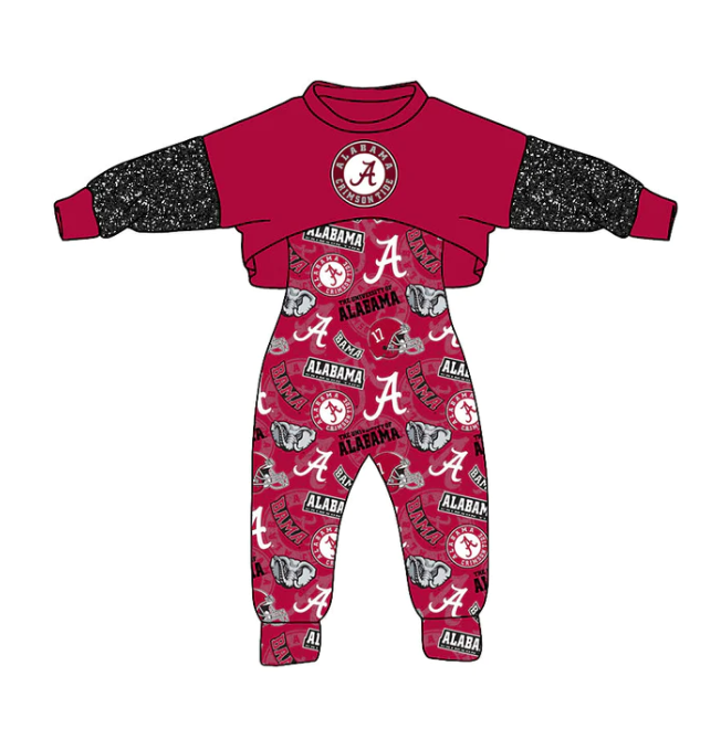 3 MOQ Aliabama Football Team Girls Top and Jumpsuit Outfit