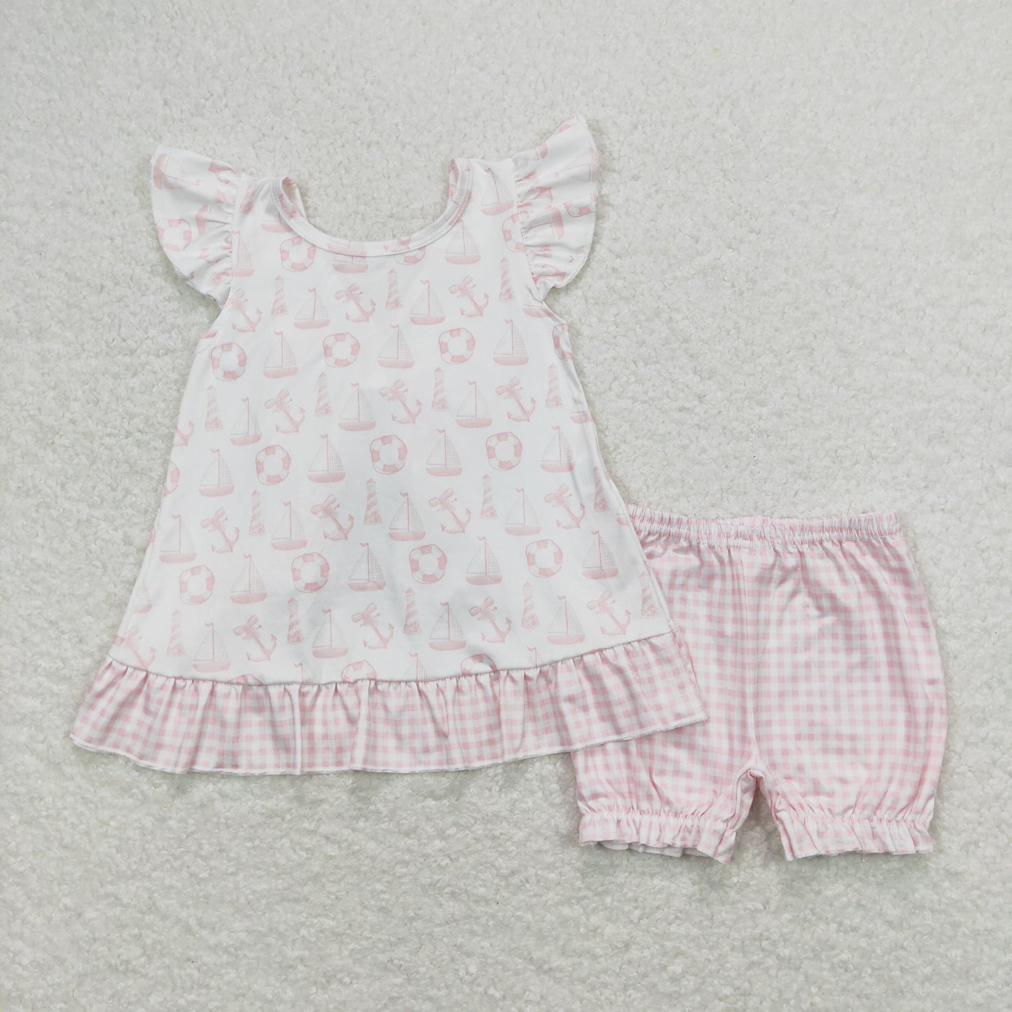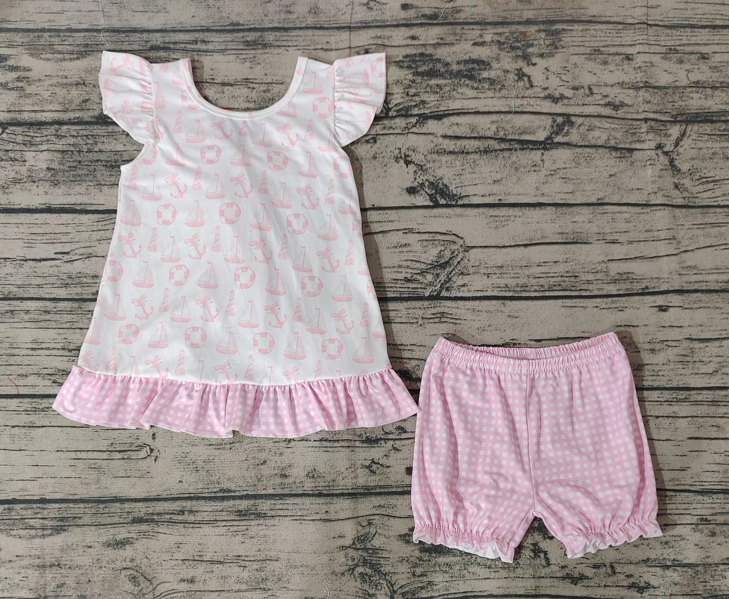 Baby Girls Pink Sailboat Anchor Shorts Set