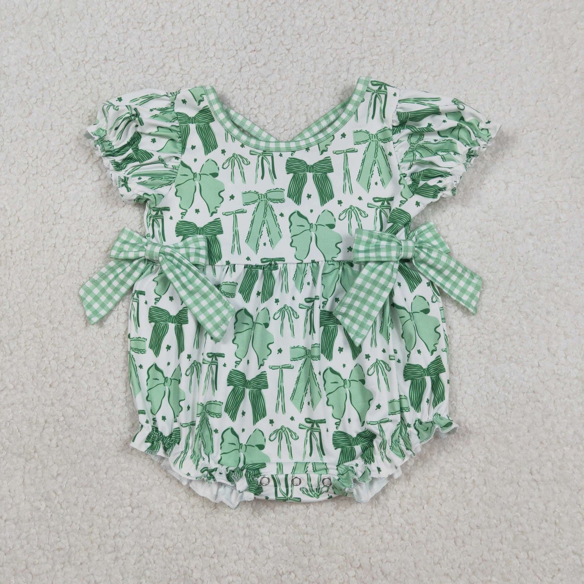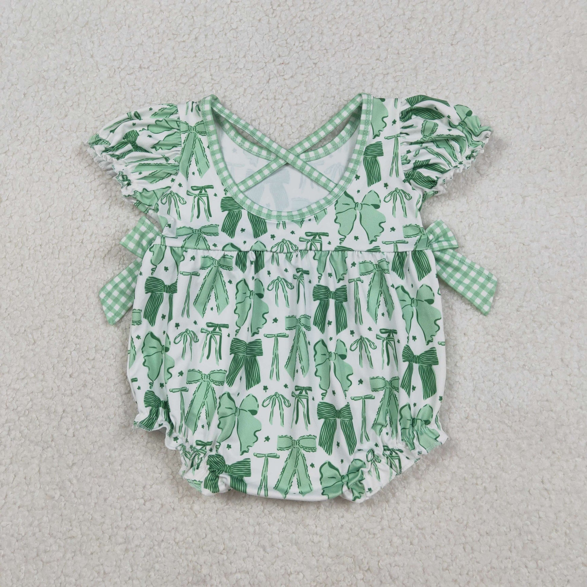 Saint Patrick Day Sibling Baby Girls Green Bow dress and romper