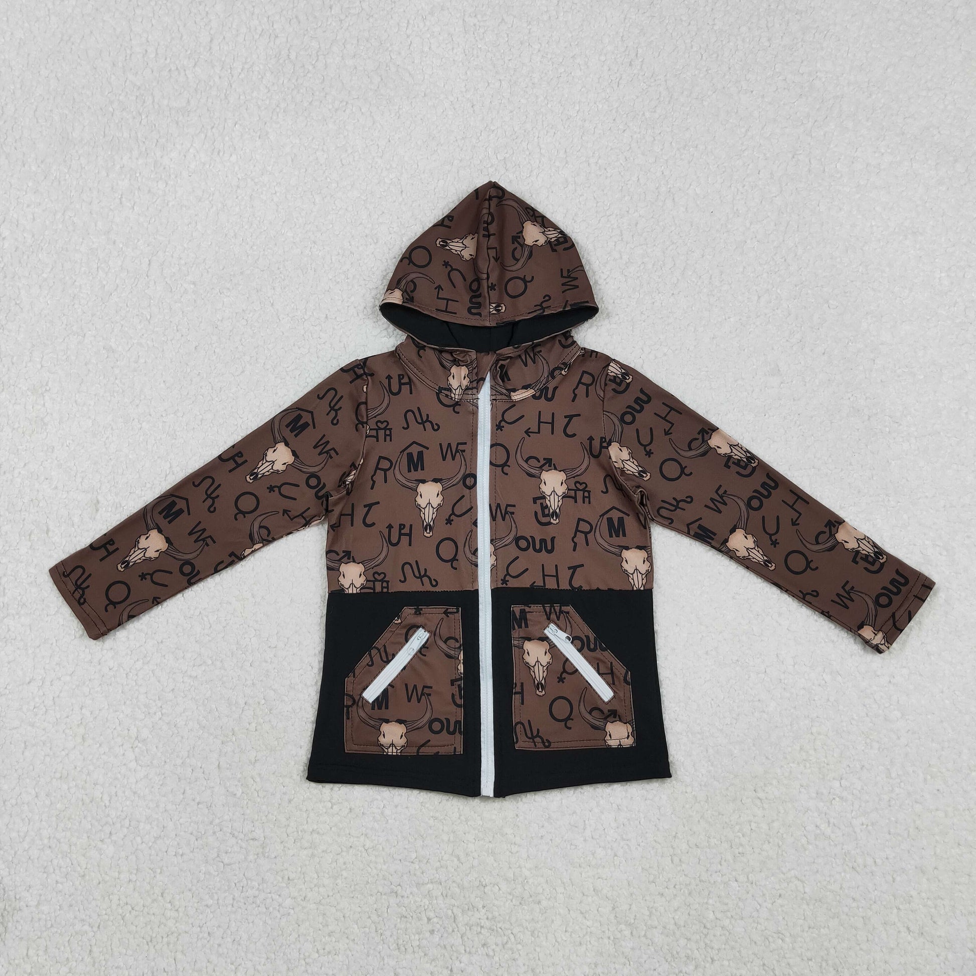 Sibling Baby Boys Western Skull Cow Hoodie Jacket/Zip-up Romper