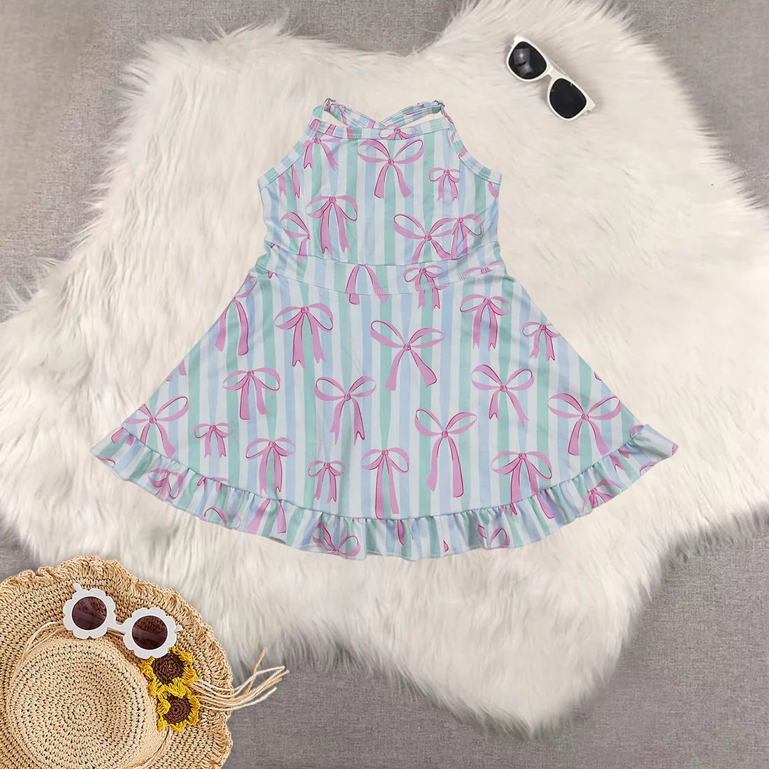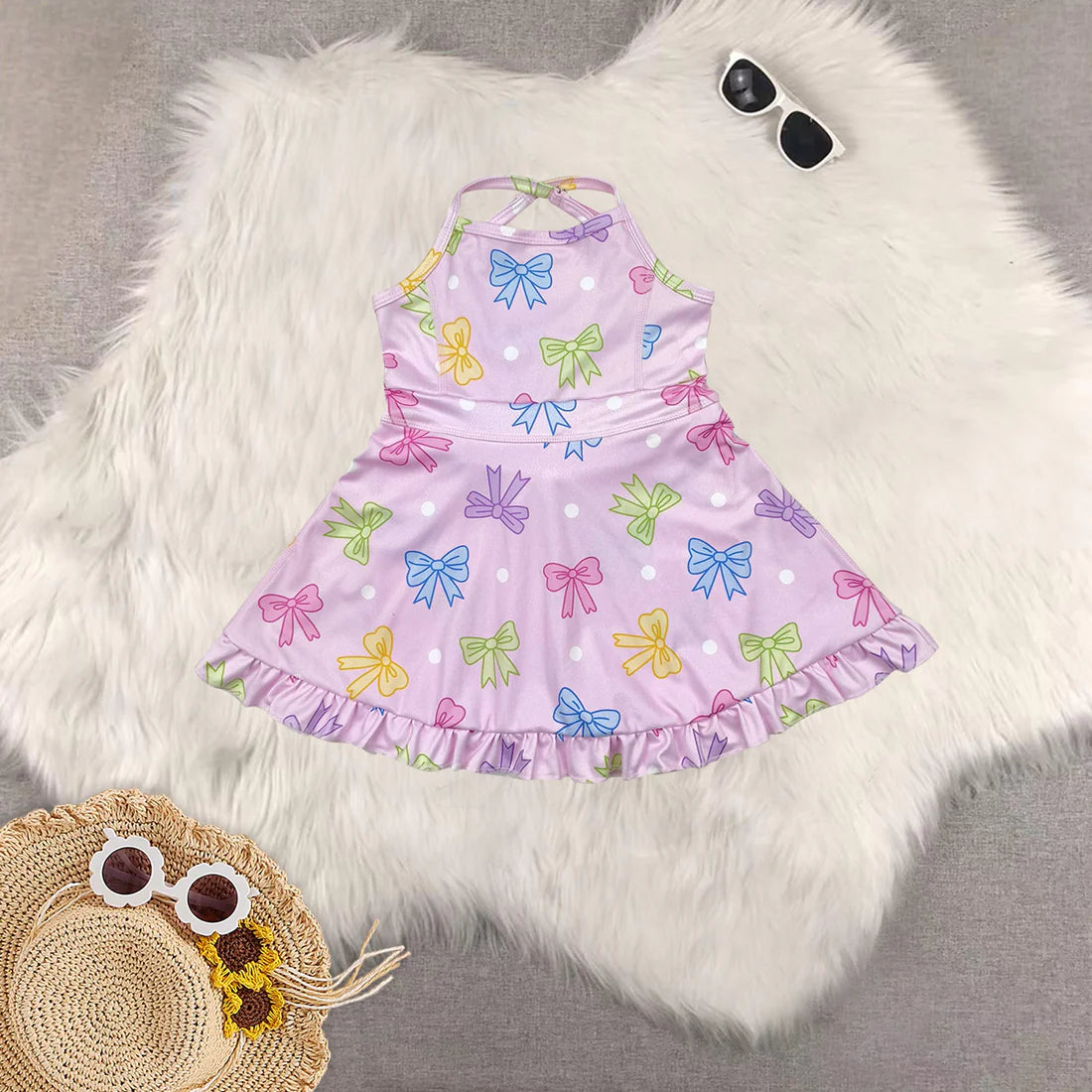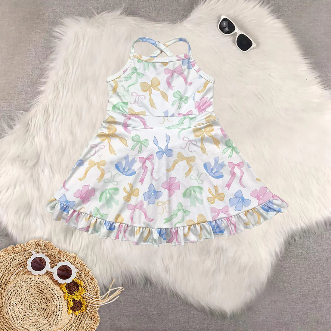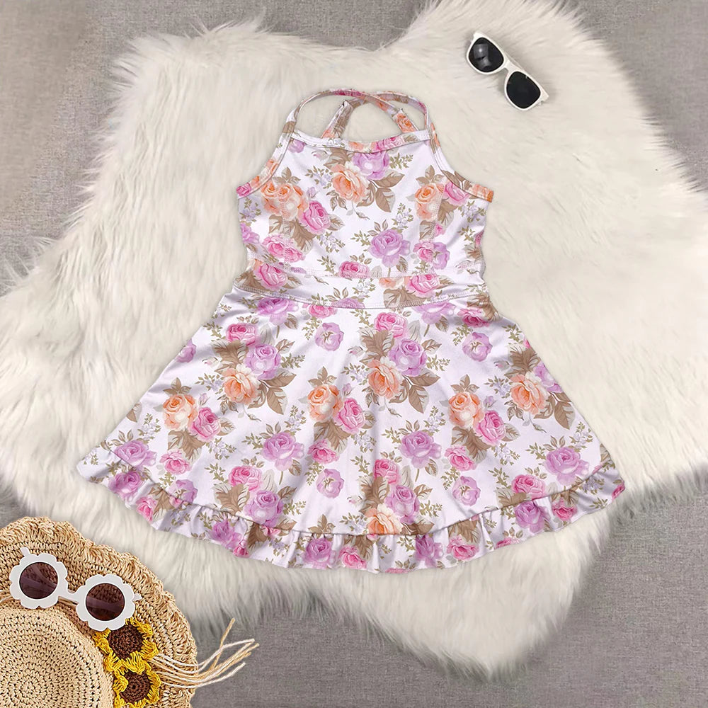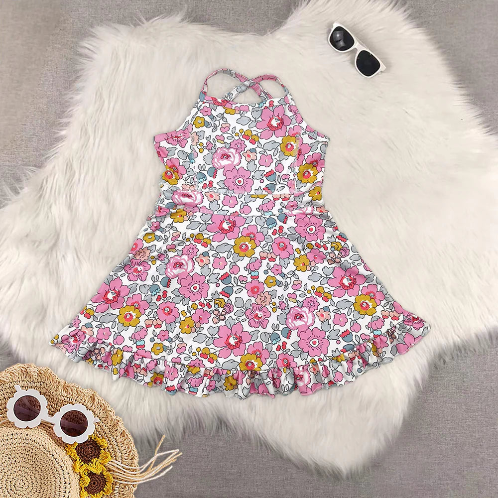 Sibling Baby Girls Active Floral Bow Yoga Summer Skort Dress
