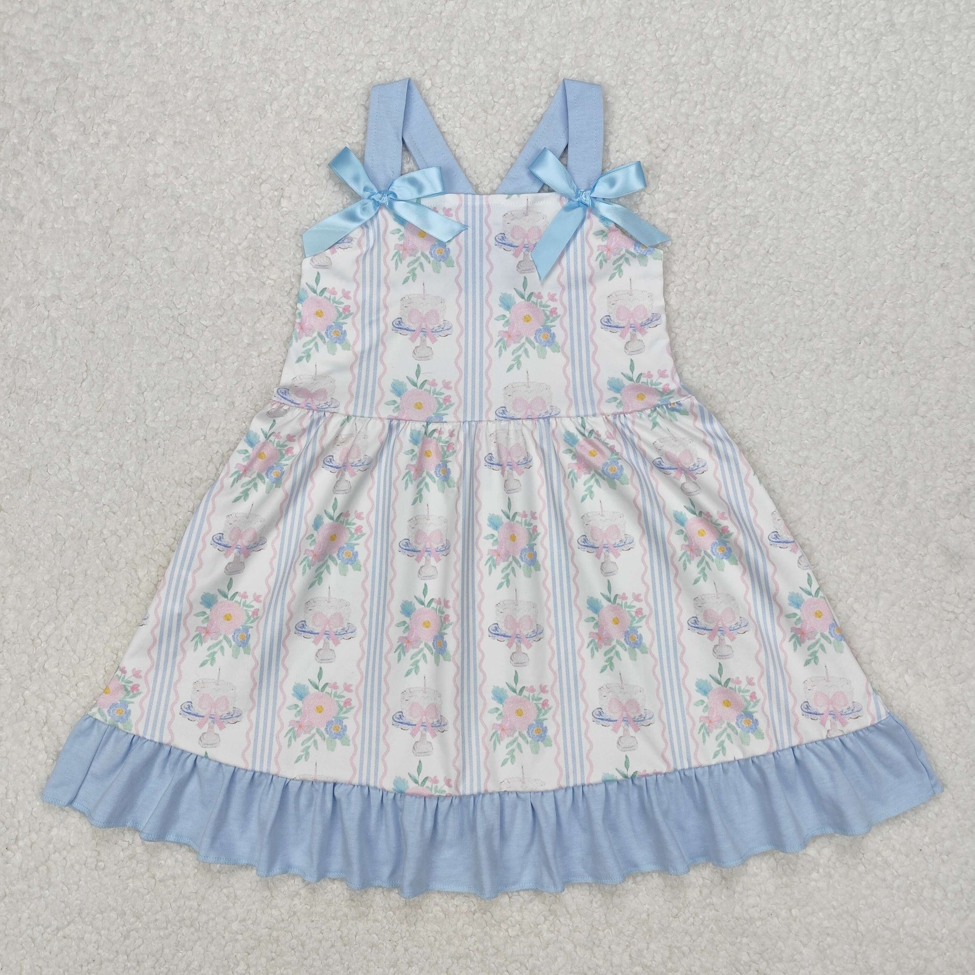 Sibling Baby Girls Flowers Cakes Straps Bows Rompers Dresses Outfits