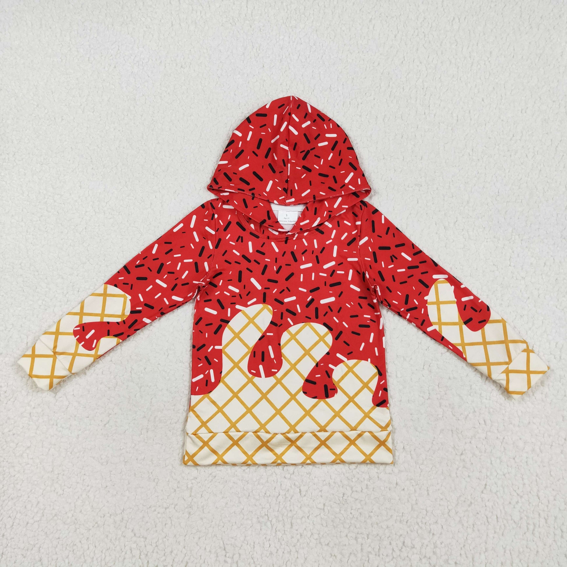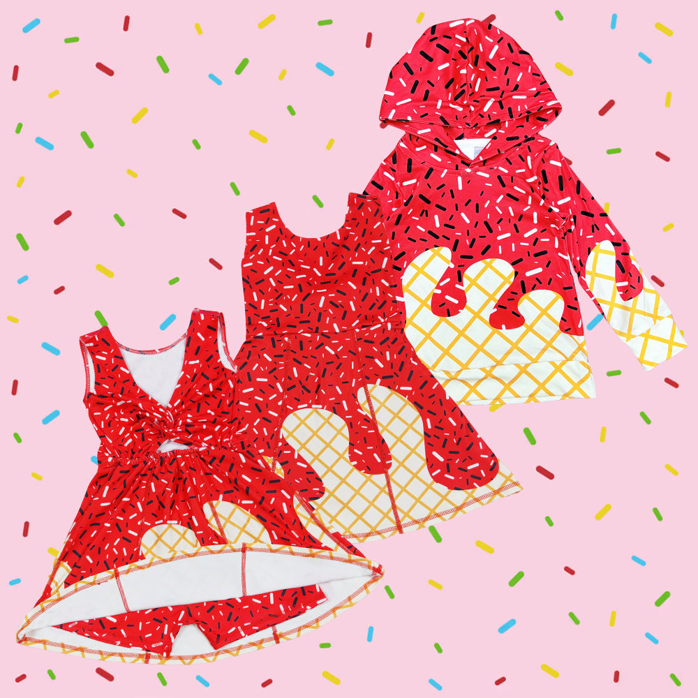 Sibling Baby Red Color Ice Cream Drip Hoodie Top and Active Dress