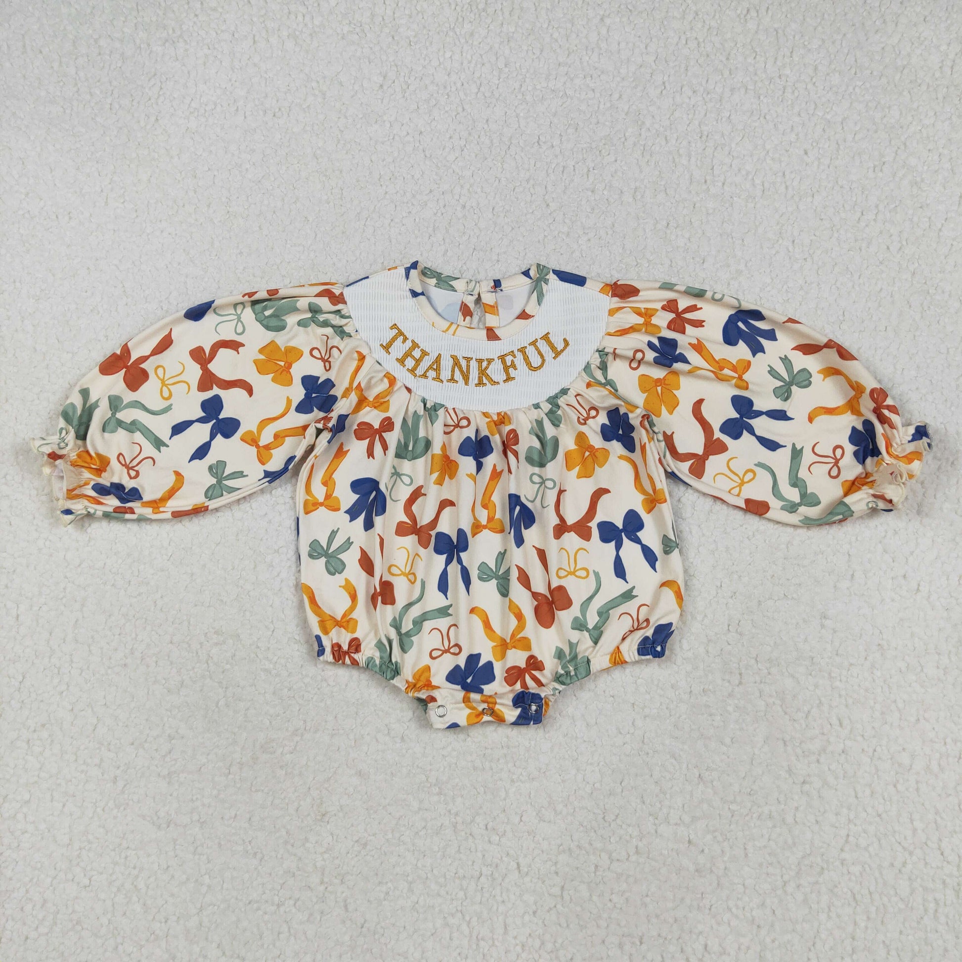 Sibling Kids Girls Embroidery Thankful Bow Smocked Dressd and Romper