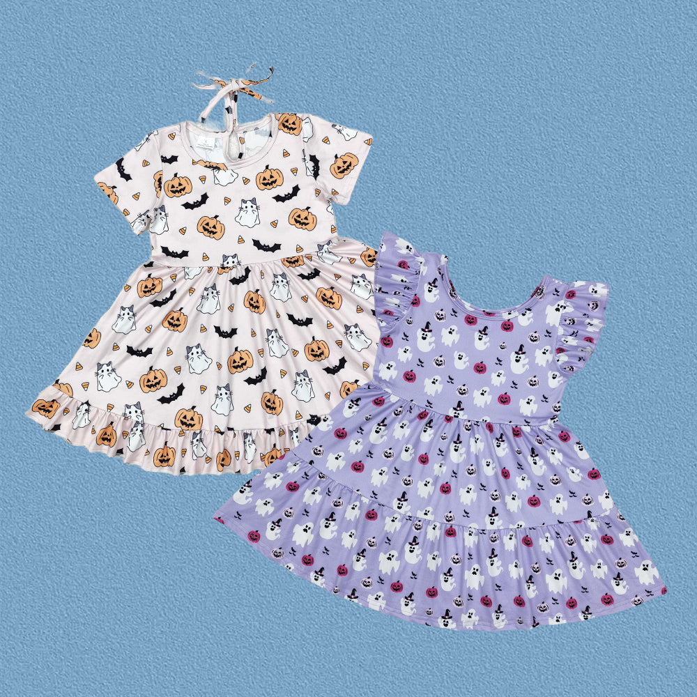 Sibling Toddler Girls Sister Halloween Ghost Pumpkin Short Sleeve Dress