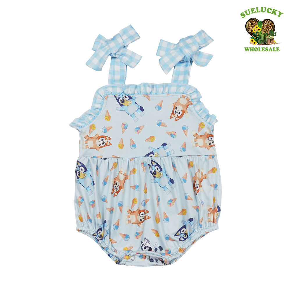 SR1113 Newborn Baby Girls Cartoon Blue Dog Romper