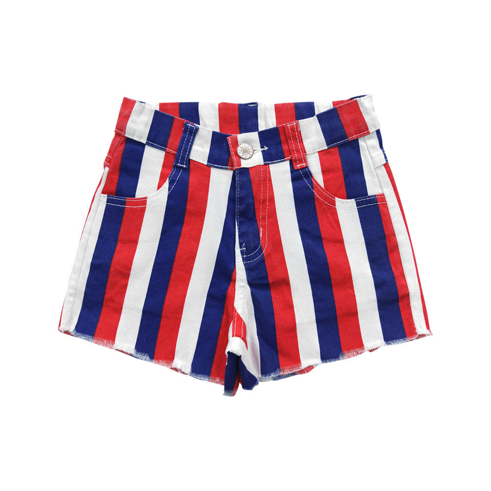 Baby Girls Denim Shorts Red Blue White Striped July 4th Jeans SS0082