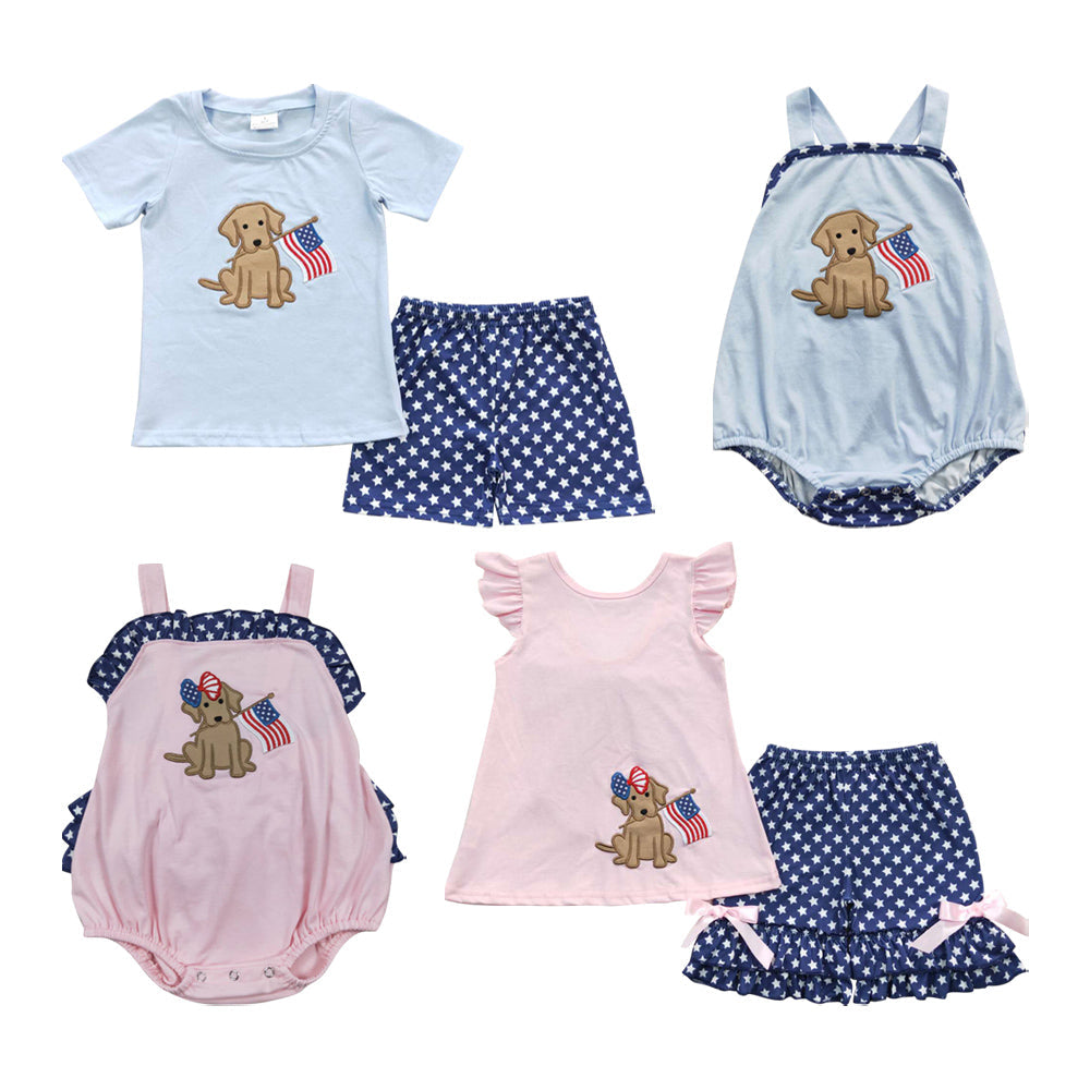 Summer Sibling Shorts Set July 4th Dog Flag Clothing Set