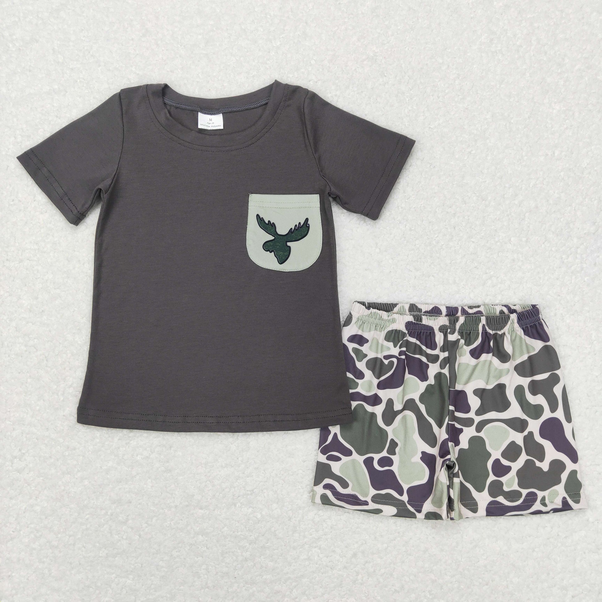 Summer Sibling Boys Brother Green Camo Hunting Deer Shorts Set