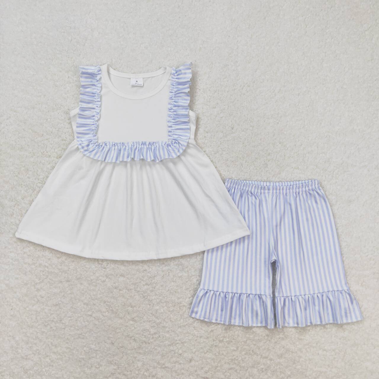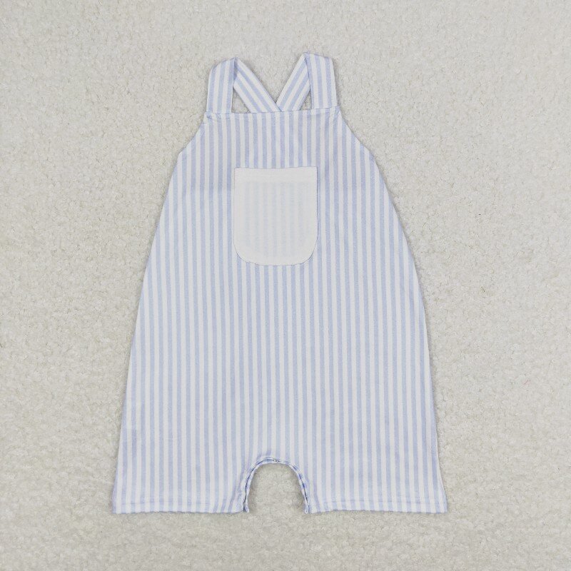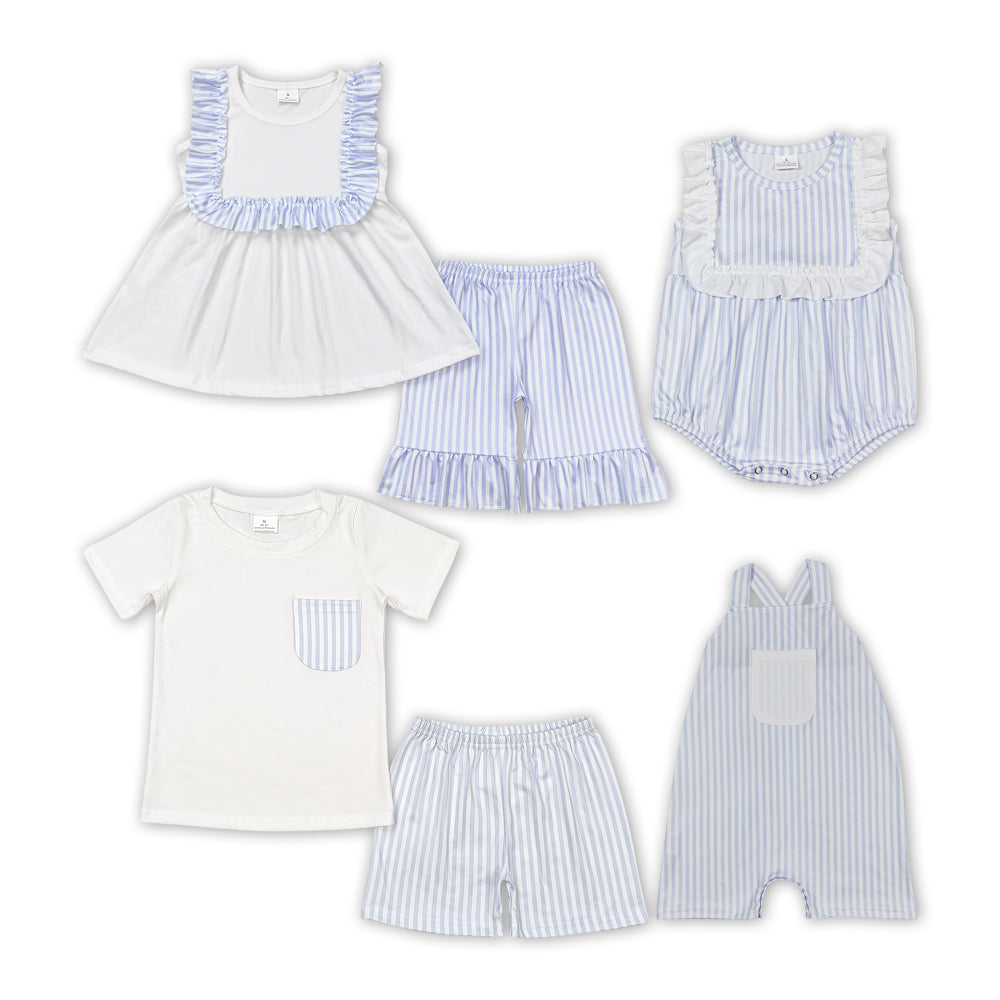 Summer Sibling Boys Girls Blue Striped Outfit and Romper