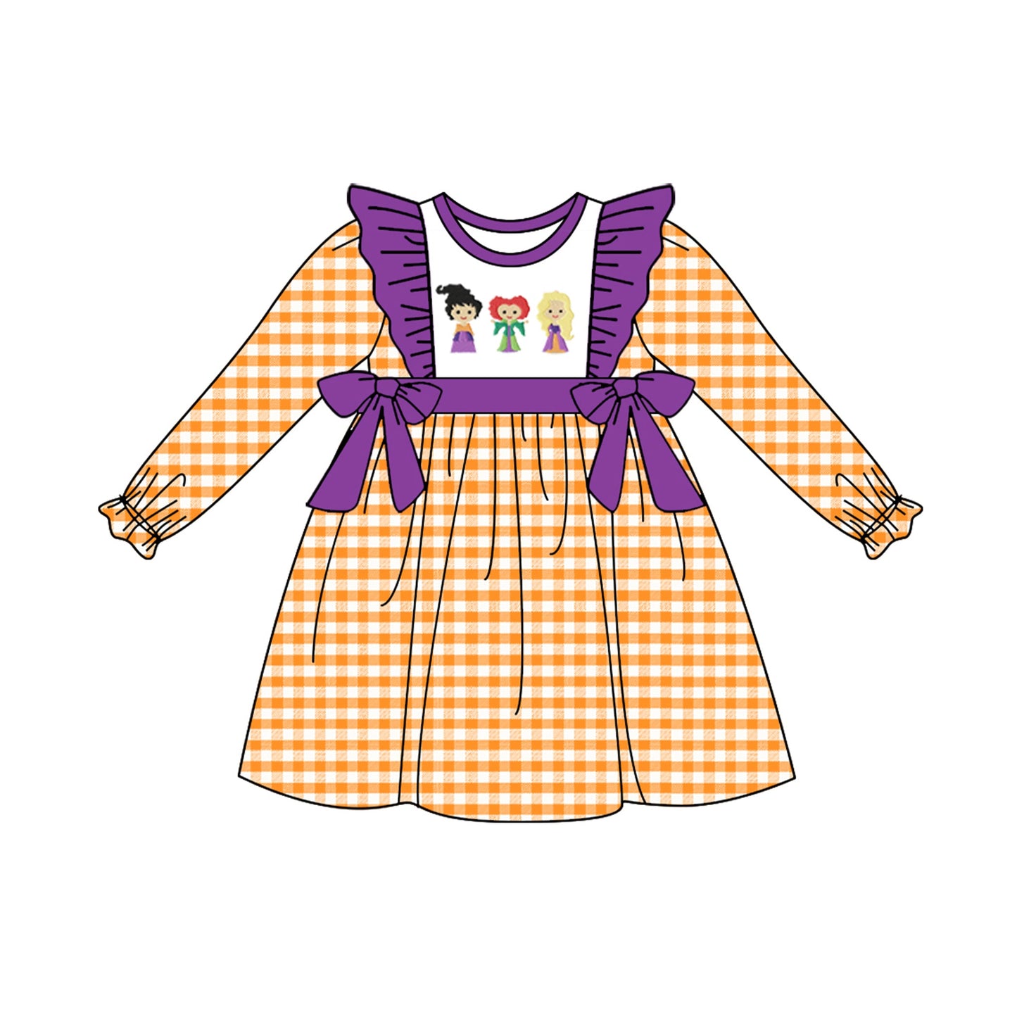 Toddler Girls Halloween Witch Orange Gingham Dress Pre-order 3 MOQ